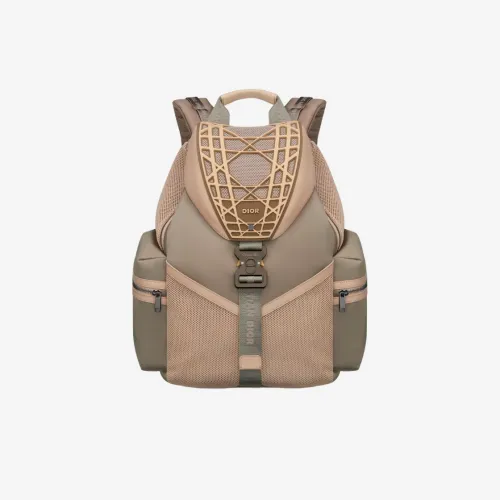 Dior Cobra Backpack Beige Smooth Calfskin Upcycled Nylon Warped Cannage Motif Rubber