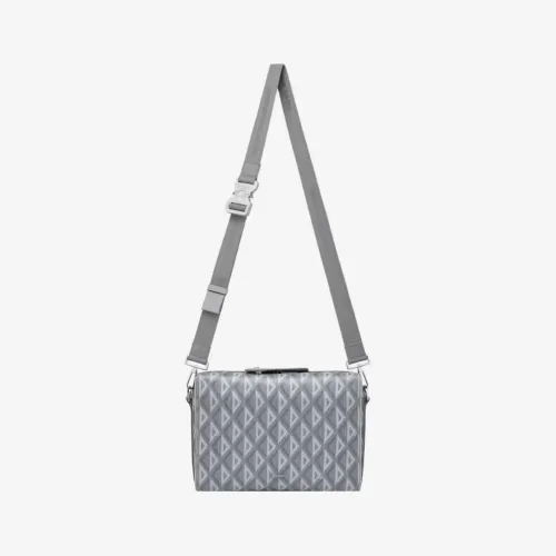 Dior Lingot Messenger Bag CD Diamond Canvas and Smooth Calfskin Grey