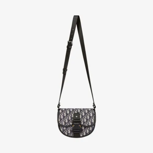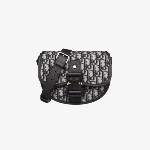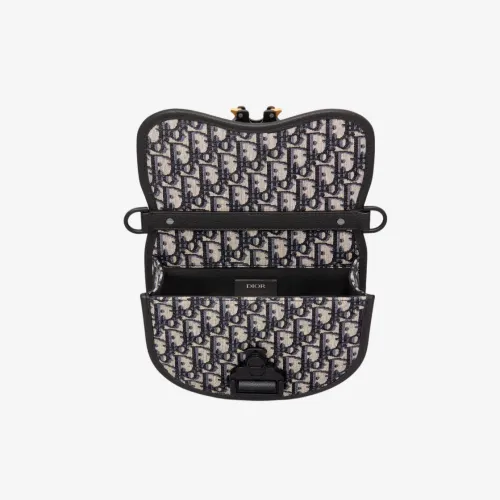 디올 갤럽 미니 메신저백 블랙 그레인드 카프스킨 베이지 & 블랙 디올 오블리크 자카드