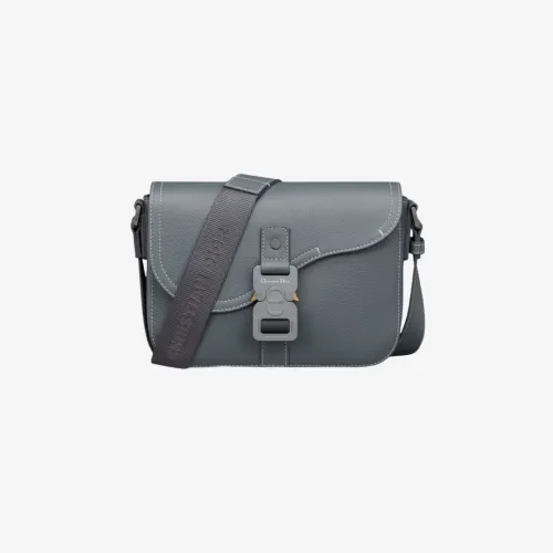 디올 스몰 새들 메신저백 그레인드 카프스킨 플랩 딥 그레이