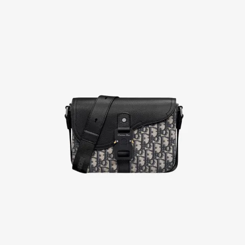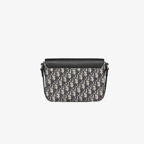 디올 미니 스트랩 새들백 블랙 그레인드 카프스킨 베이지 & 블랙 디올 오블리크 자카드