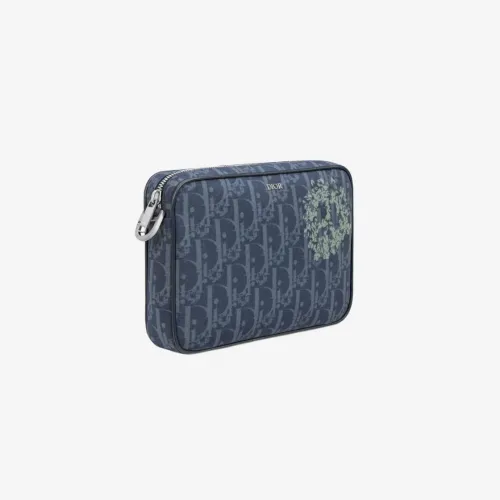 디올 x 데님 티어스 디올 티어스 새들 트리플 파우치 데님 블루 디올 오블리크 피스 사인 디올 티어스