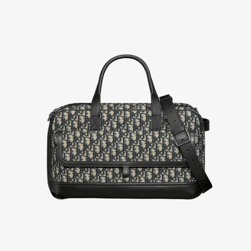 디올 힛 더 로드 펫 캐리어 백 디올 오블리크 자카드 블랙 스무스 카프스킨 베이지 블랙