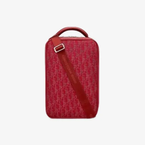 디올 갤럭시 레더 월드 투어 슬링백 레드 디올 오블리크