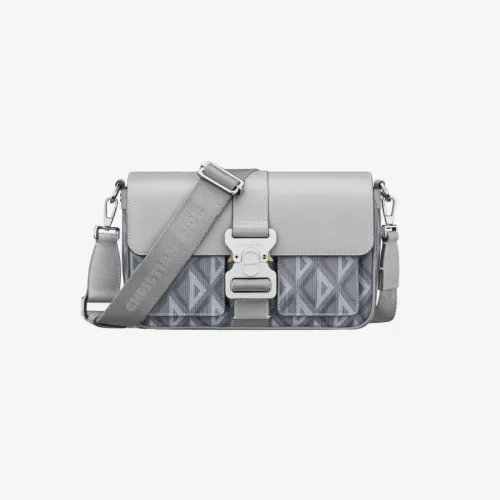 Dior Hit The Road Bag Strap Dior CD Diamond Canvas Smooth Calfskin Gray