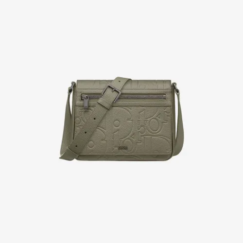 디올 메신저백 플랩 디올 그래비티 레더 그레인드 카프스킨 카키