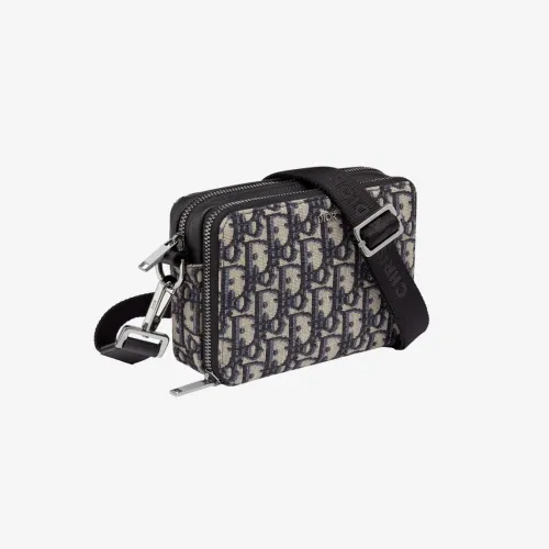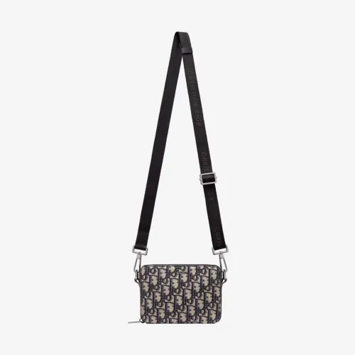 디올 숄더 스트랩 파우치 베이지 & 블랙 디올 오블리크 자카드