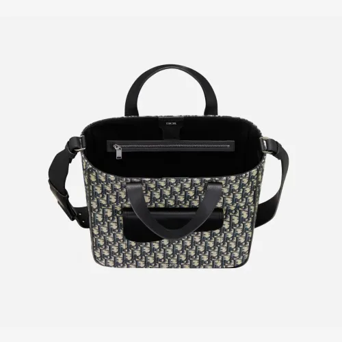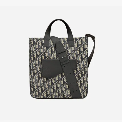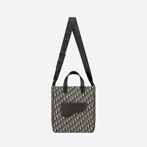 디올 새들 숄더 스트랩 토트백 베이지 & 블랙 디올 오블리크 자카드