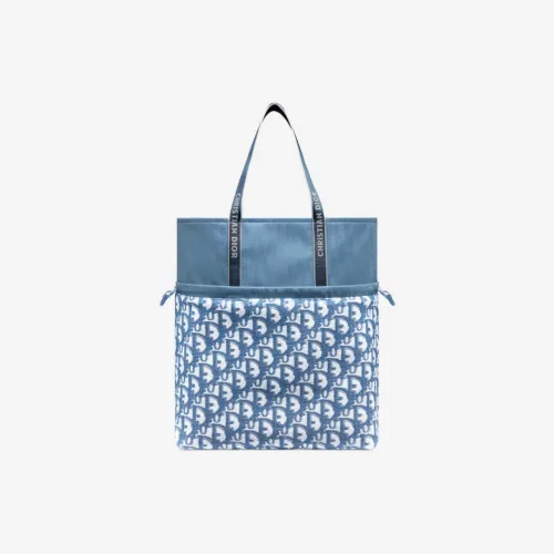 디올 리버시블 토트백 디올 오블리크 테리 코튼 테크니컬 나일론 블루