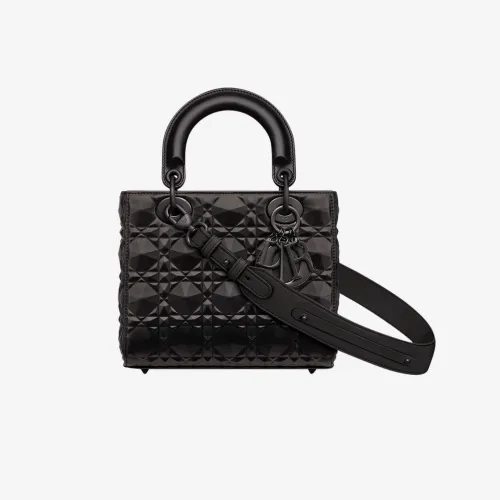 디올 스몰 레이디 백 마이 ABC디올 까나쥬 카프스킨 다이아몬드 모티프 블랙