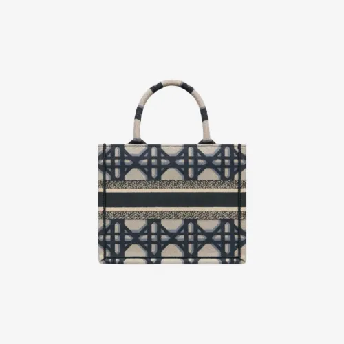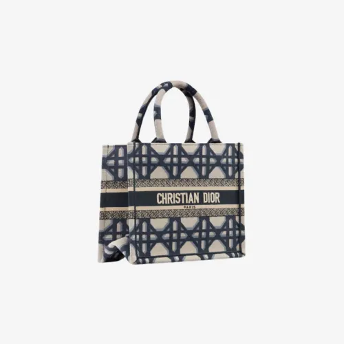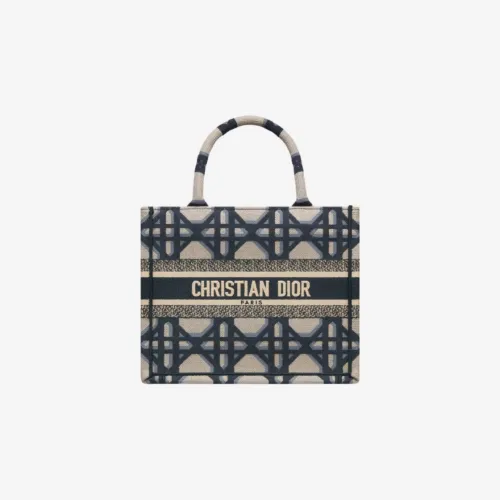 Dior Small Book Tote Bag Macrocannage Embroidery Beige Blue
