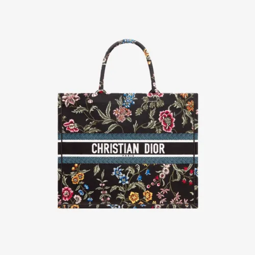 디올 라지 디올 북 토트백 디올 쁘띠 플레르 자수 블랙 멀티컬러