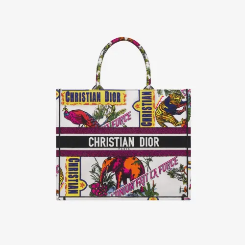 디올 라지 디올 북 토트백 인디언 애니멀 자수 화이트 멀티컬러
