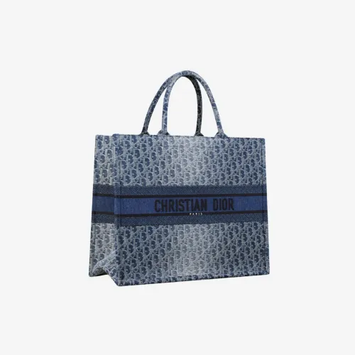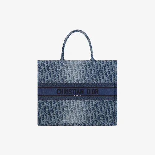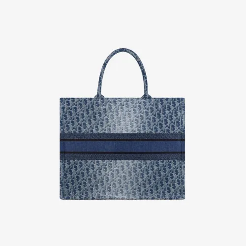 디올 라지 북 토트백 데님 오블리크 자카드 블루