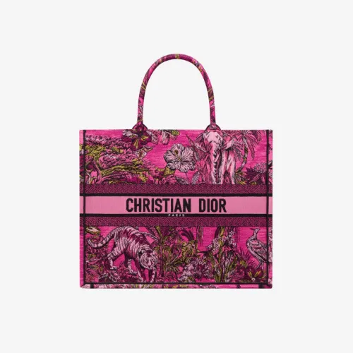 디올 라지 디올 북 토트백 푸시아 멀티컬러 트왈 드 주이 보야쥐 자수