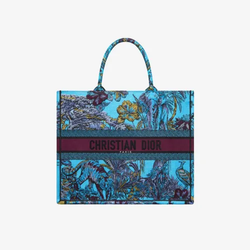 디올 라지 디올 북 토트백 셀레스티얼 블루 멀티컬러 트왈 드 주이 보야쥐 자수