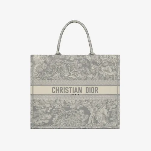디올 라지 북 토트백 그레이 에크루 트왈 드 주이 리버스 자수