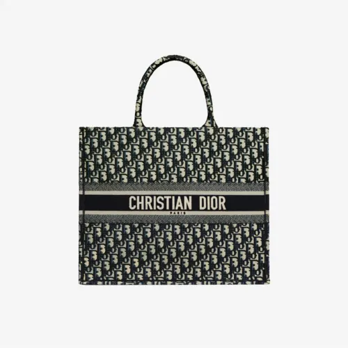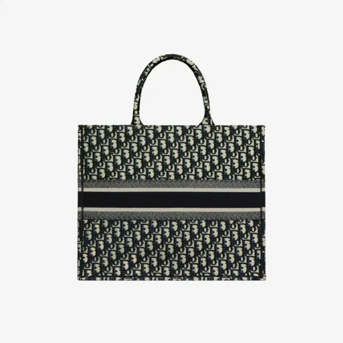 디올 라지 북 토트백 블루 디올 오블리크 자수