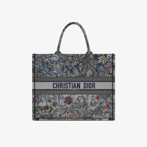 Dior Large Dior Book Tote Denim Multicolor Dior Jardin Magique Embroidery