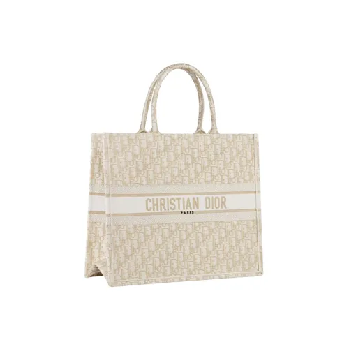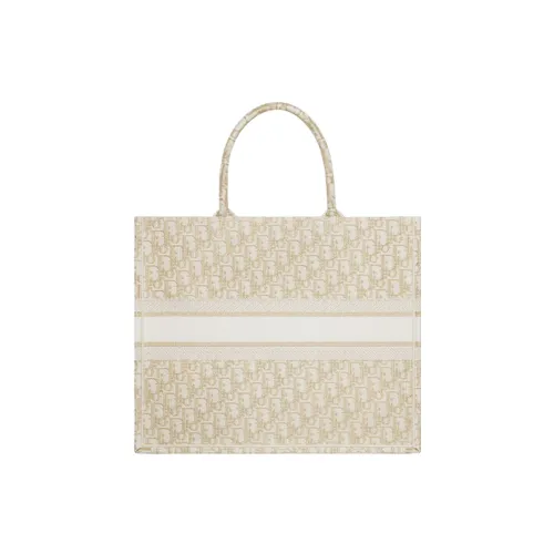 Dior Large Book Tote White Gold Tone Oblique