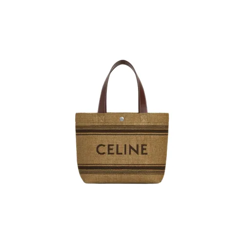 셀린느 라피아 이펙트 카프스킨 텍스타일 미니 카바스 내츄럴 체스트넛