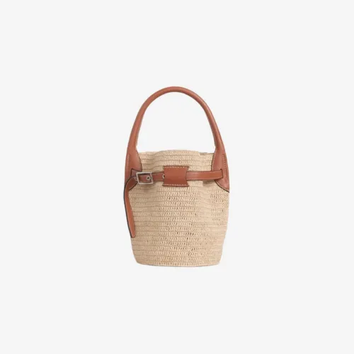 셀린느 라피아 & 카프스킨 빅 백 나노 버킷 내츄럴 탄