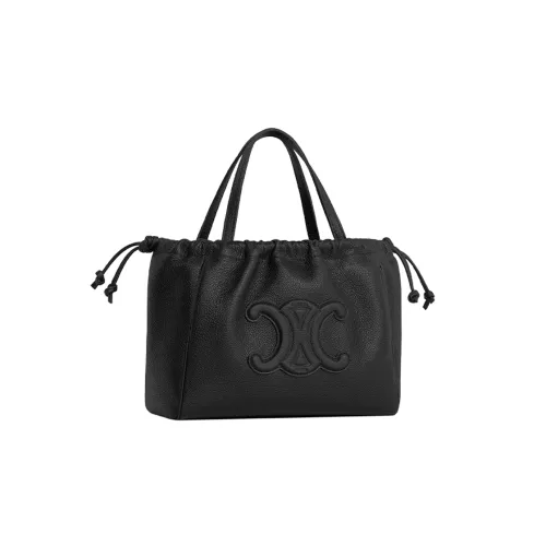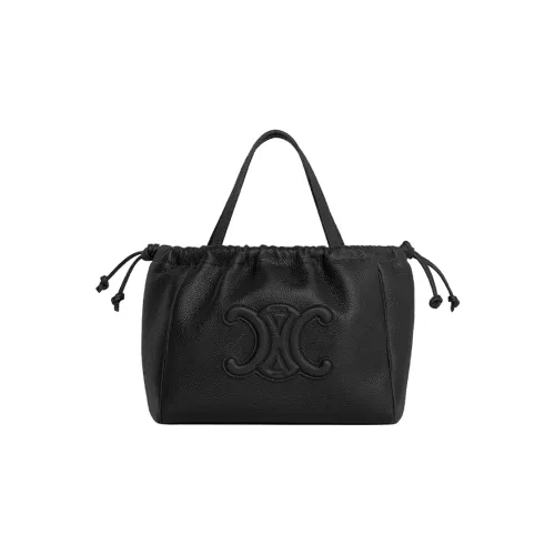셀린느 스몰 카바스 드로우스트링 퀴르 트리옹프 그레인드 카프스킨 블랙