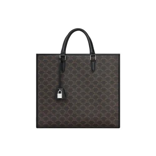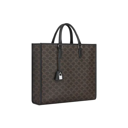 Celine Cabas Vertical in Triomphe Canvas Calfskin Black
