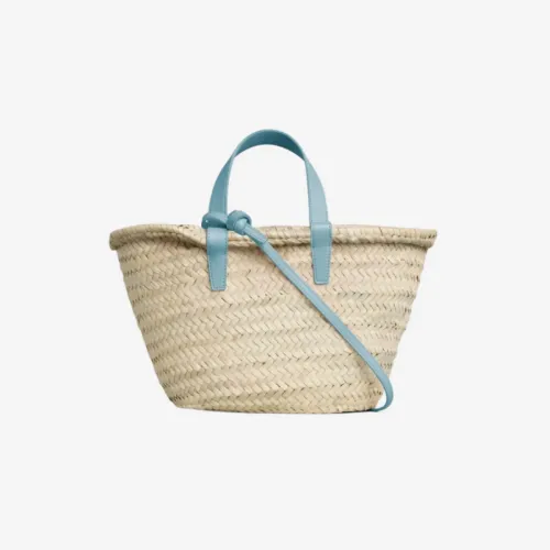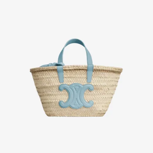 Celine Teen Triomphe Celine Classic Panier in Palm Leaves and Calfskin California Blue