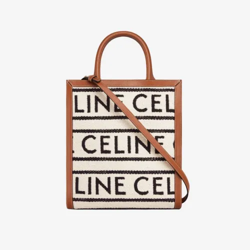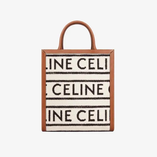 Celine Small Vertical Cabas Celine in Textile with Celine All-Over and Calfskin White Black