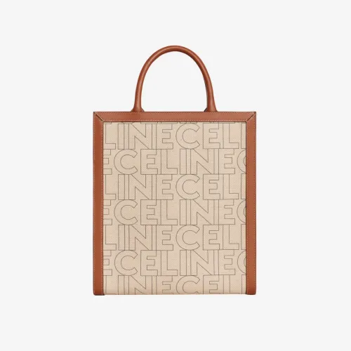 셀린느 올오버 프린트 텍스타일 스몰 버티컬 카바스 내츄럴 탄