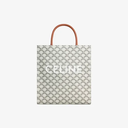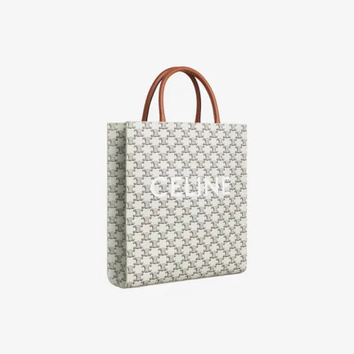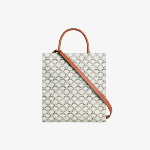 셀린느 트리옹프 캔버스 & 셀린느 프린트 카프스킨 미디움 버티컬 카바스 탄 에크루