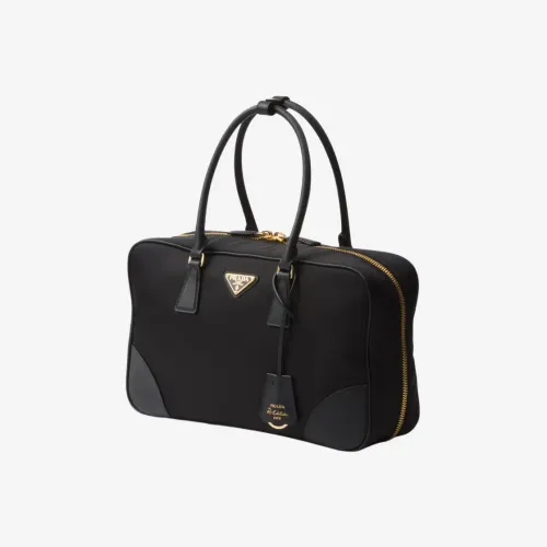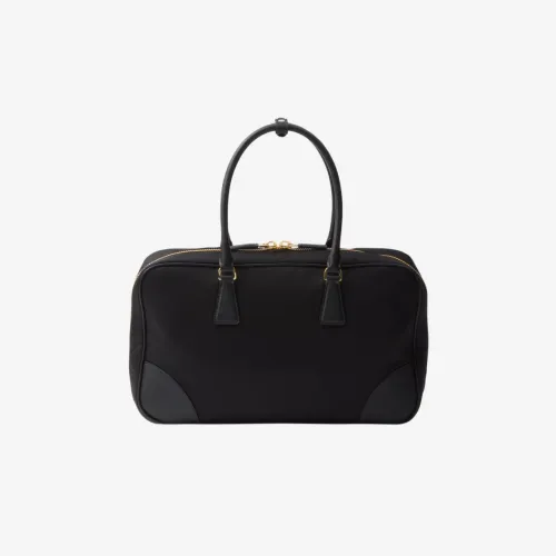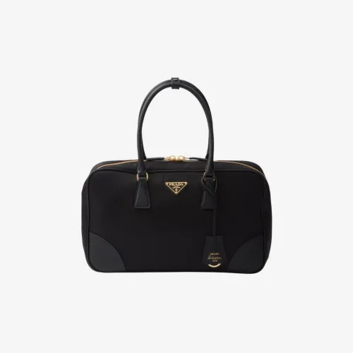 프라다 리에디션 1978 라지 리나일론 및 사피아노 레더 투 핸들 백 블랙