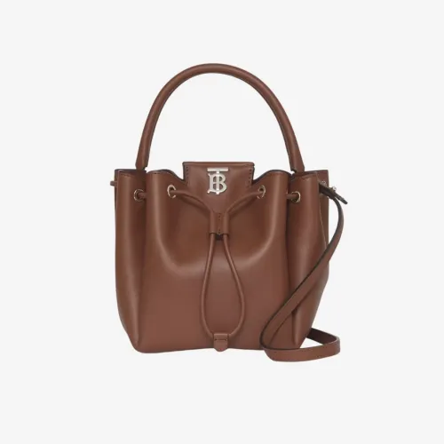 Burberry Monogram Motif Leather Bucket Bag Tan