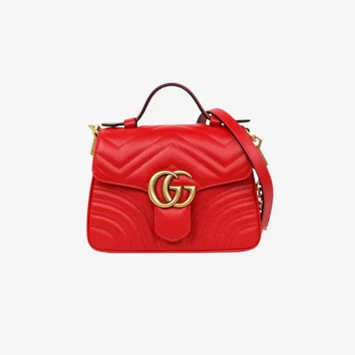 Gucci GG Marmont Mini Top Handle Bag Hibiscus Red