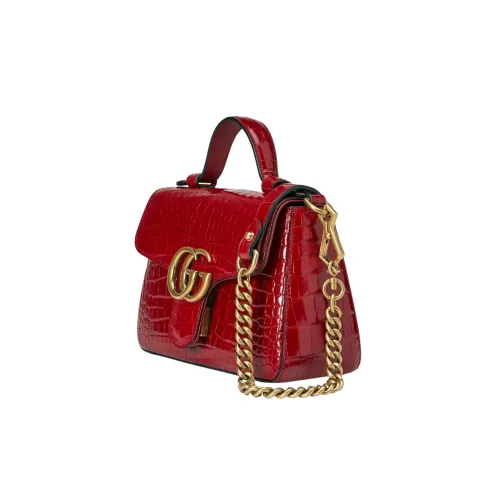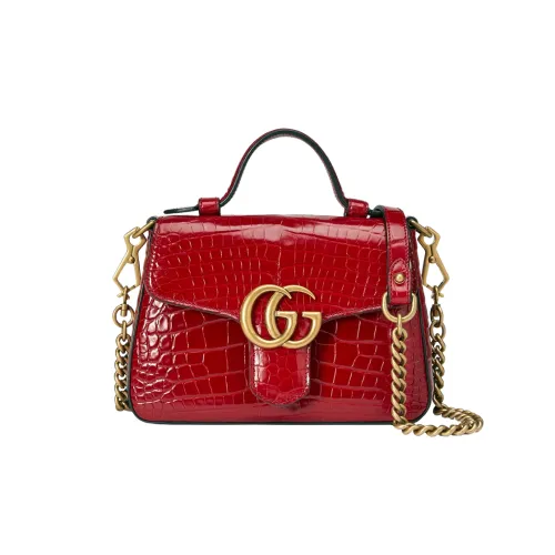 Gucci GG Marmont Crocodile Mini Top Handle Bag Red