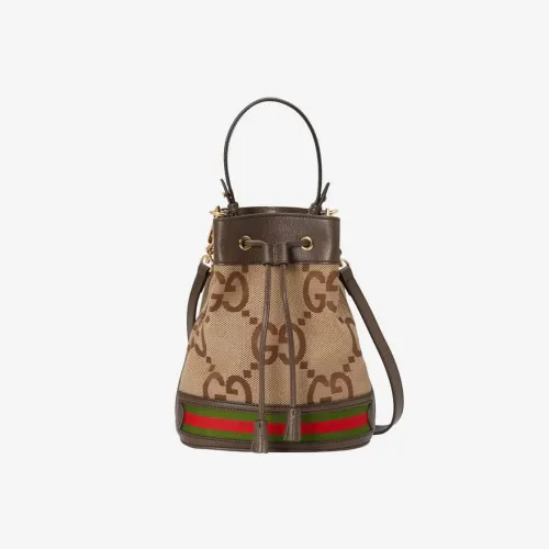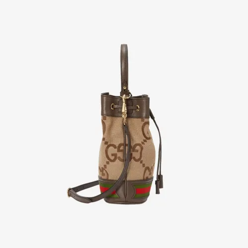 구찌 오피디아 스몰 점보 GG로고 버킷백 카멜 에보니