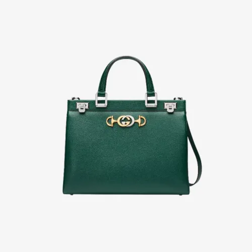 구찌 주미 그레이니 레더 미디움 탑 핸들 백 다크 그린