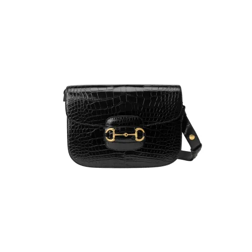 구찌 홀스빗 1955 크로커다일 숄더백 블랙 크로커다일