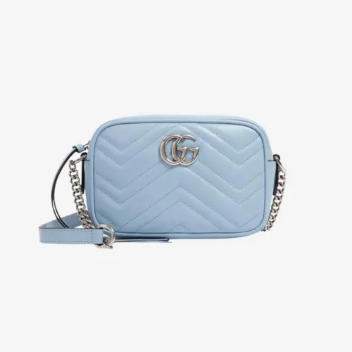 구찌 GG 마몽 퀼티드 숄더백 페일 블루