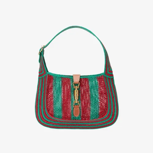 Gucci Jackie 1961 Small Shoulder Bag Green Red Straw Effect