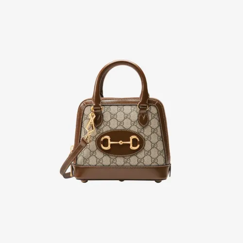 구찌 홀스빗 1955 미니 탑 핸들백 베이지 에보니 다크 브라운