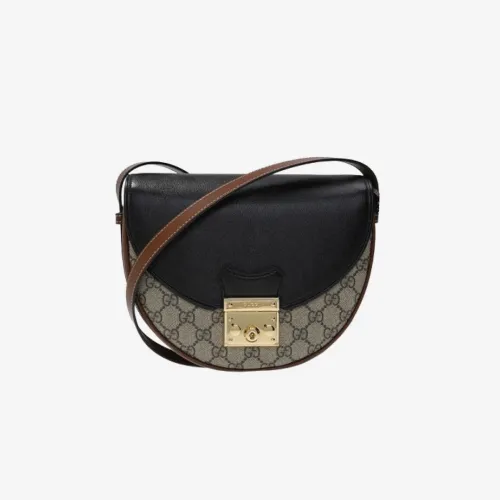 구찌 GG 슈프림 캔버스 패드락 라운드 스몰 숄더백 베이지 에보니 블랙