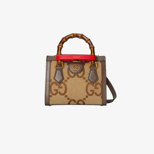 구찌 다이애나 점보 GG 미니 토트백 카멜 에보니 캔버스