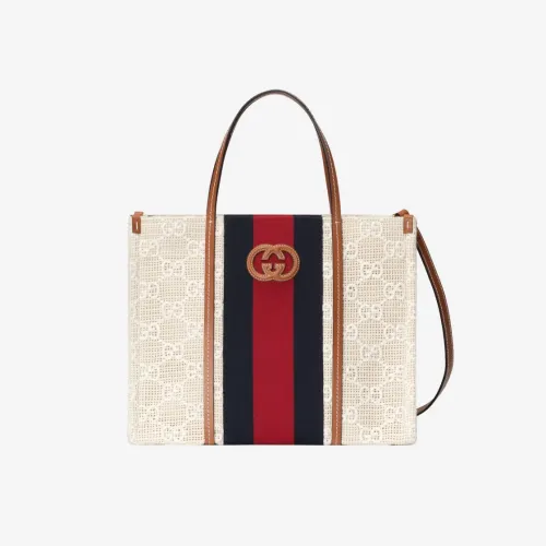 Gucci Medium Interlocking G Tote Bag Beige Ivory GG Net